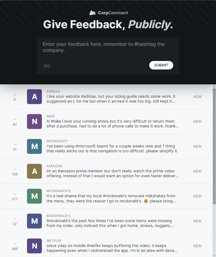 CorpComment is a public forum for posting comments about your favorite (or least favorite) companies.